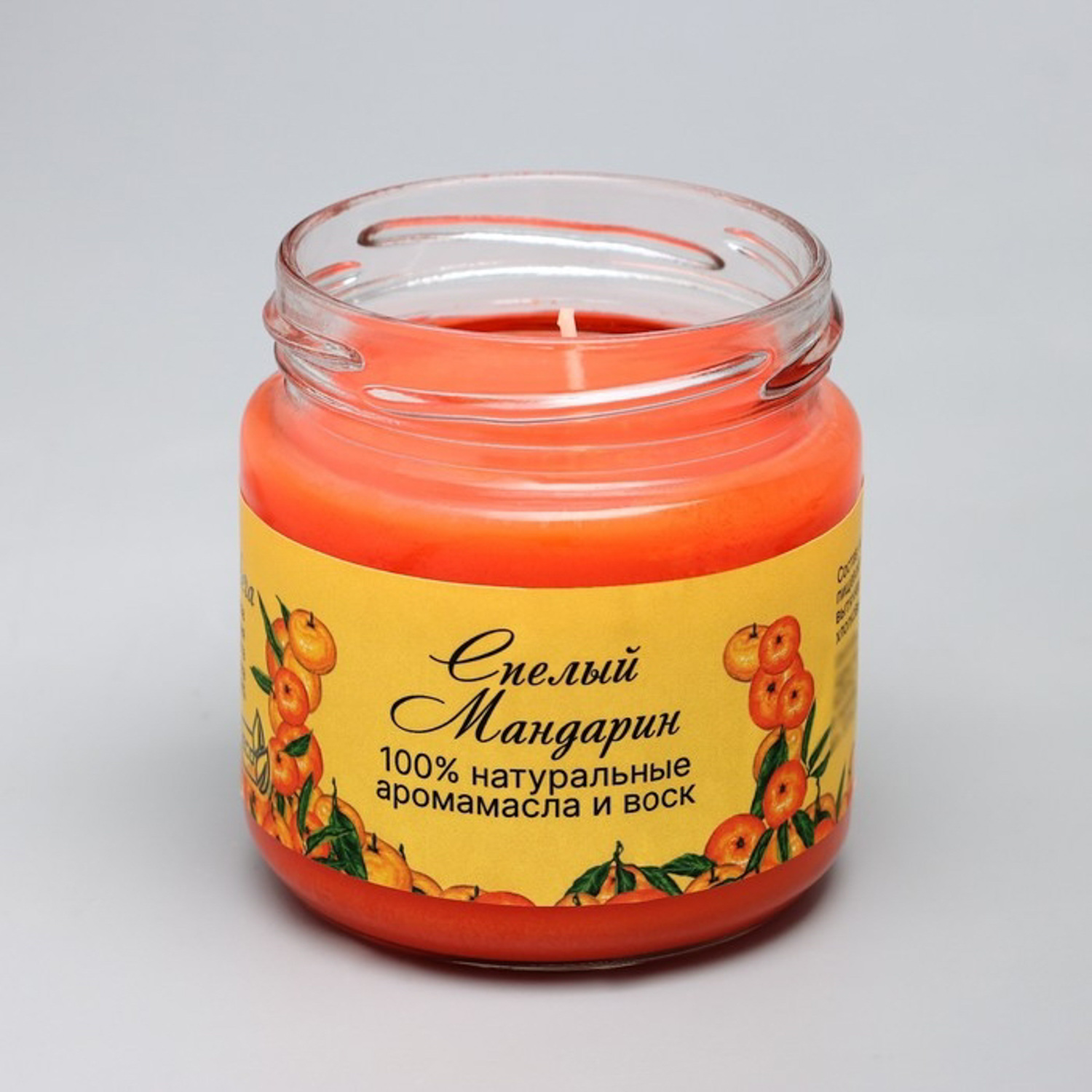 Натуральная эко свеча из пальмового воска, "Спелый мандарин", оранжевая, 7х7,5 см, 14 ч 6766593