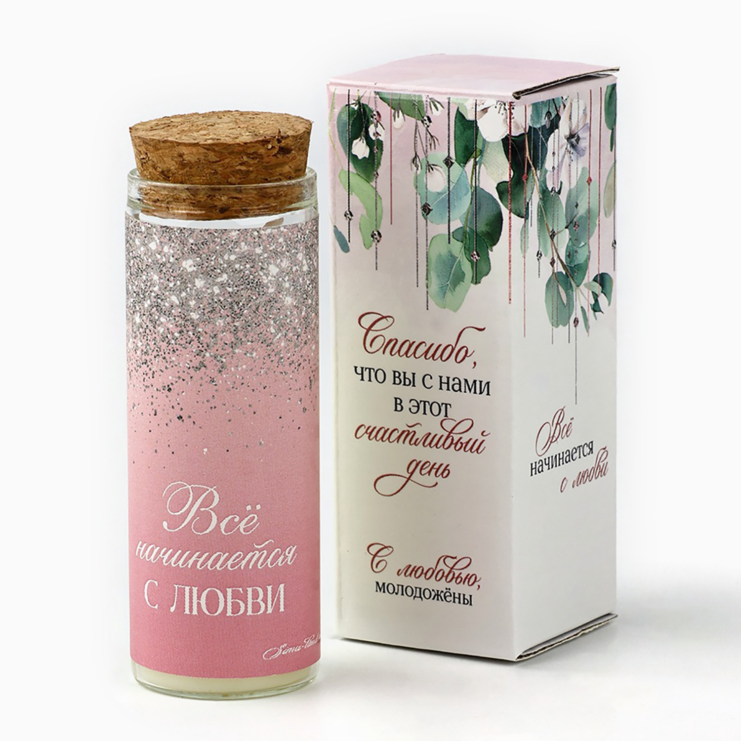 Свеча в колбе «Все начинается с любви» 8×3 см, 10649417