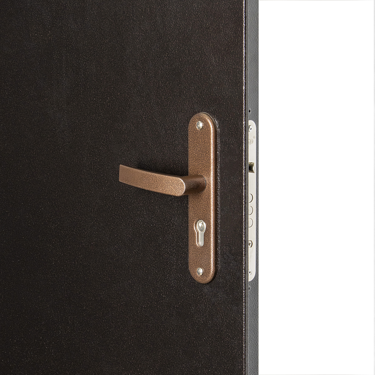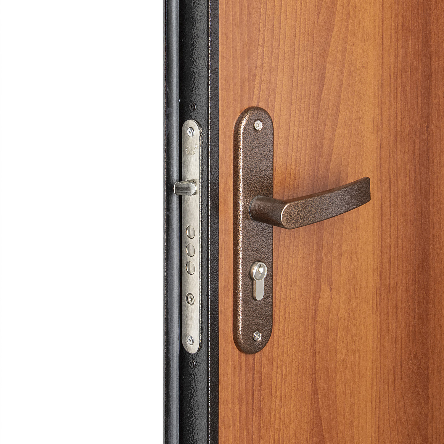 Дверное полотно, коробка с наличником, петли - 2 шт., противосъемные ригели - 3 шт., глазок, основн |