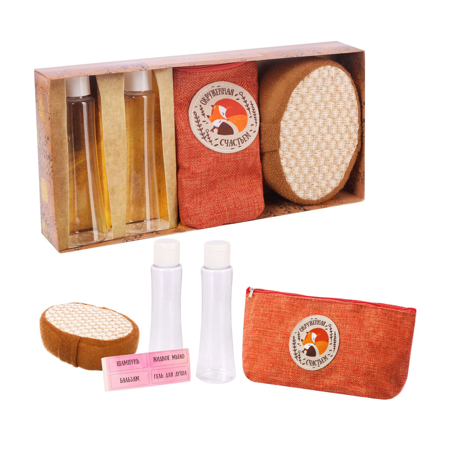 яяяНабор косметичка+мочалка+2 бутылочки "С теплыми пожеланиями"   2494986