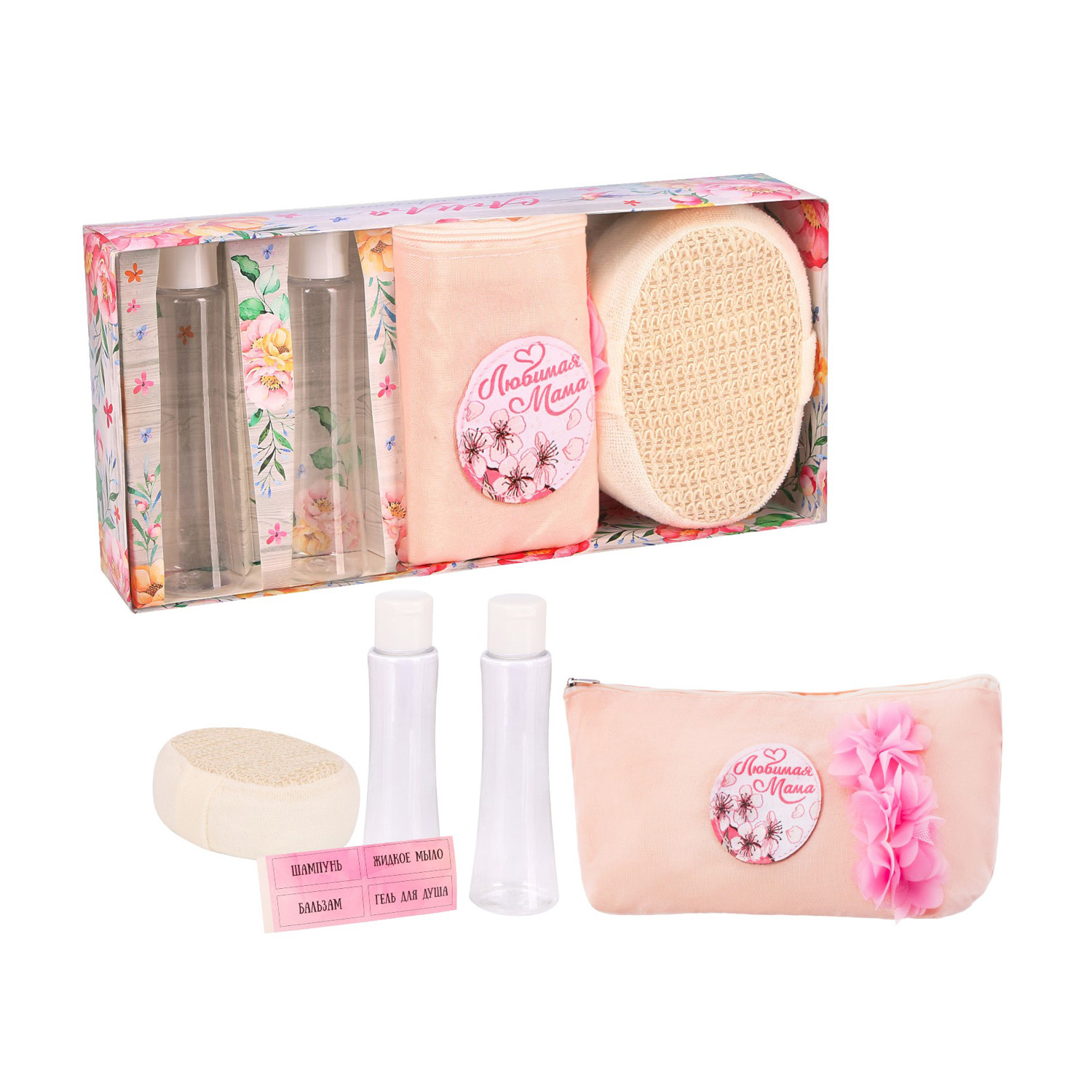 яяяНабор косметичка+мочалка+2 бутылочки "Самая лучшая и родная"   2494984