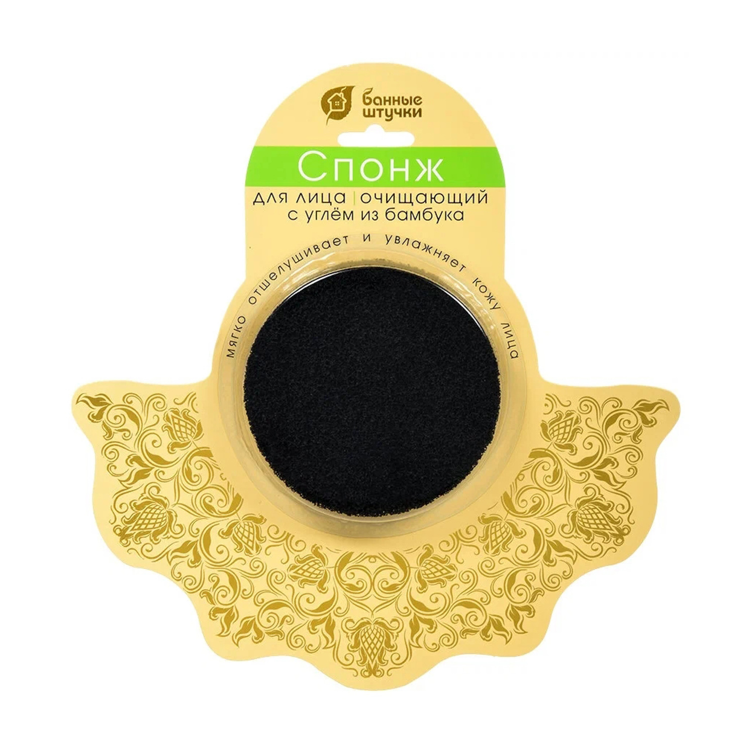 яяяСпонж для лица, с углём из бамбука, очищающий, d=90х15 мм "Банные штучки" / 30