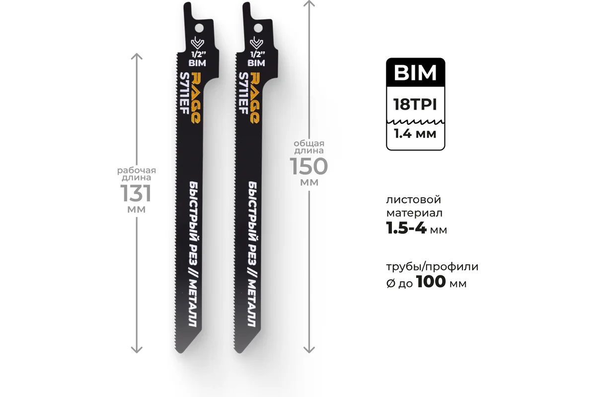 Полотно д/сабельной пилы МЕТАЛЛ 2шт 150/1,4мм прямой рез S711EF арт.552111 RAGE VIRA *10/100