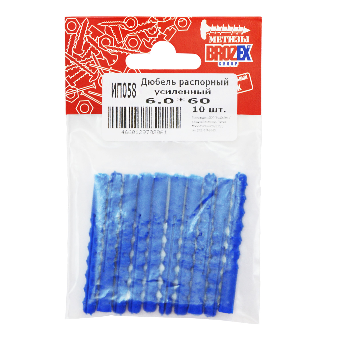 Дюбель распорный усиленный BROZEX 6,0*60 пакет (10шт) *10/100