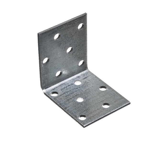 Крепежный уголок усилинный имеет дополнительное ребро жесткости, что придает ему большую прочность. Большие отверстия позволяют применять крепежные элементы больших диаметров: анкеры, шурупы с шестигранной головкой для крепления деревянных лаг, шурупы по дереву с полукруглой головкой. Для крепления к деревянным конструкциям используют также ершеные гвозди.
