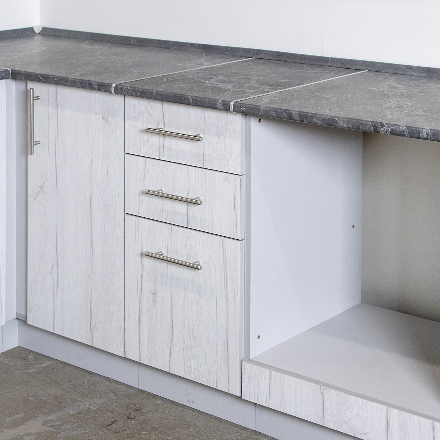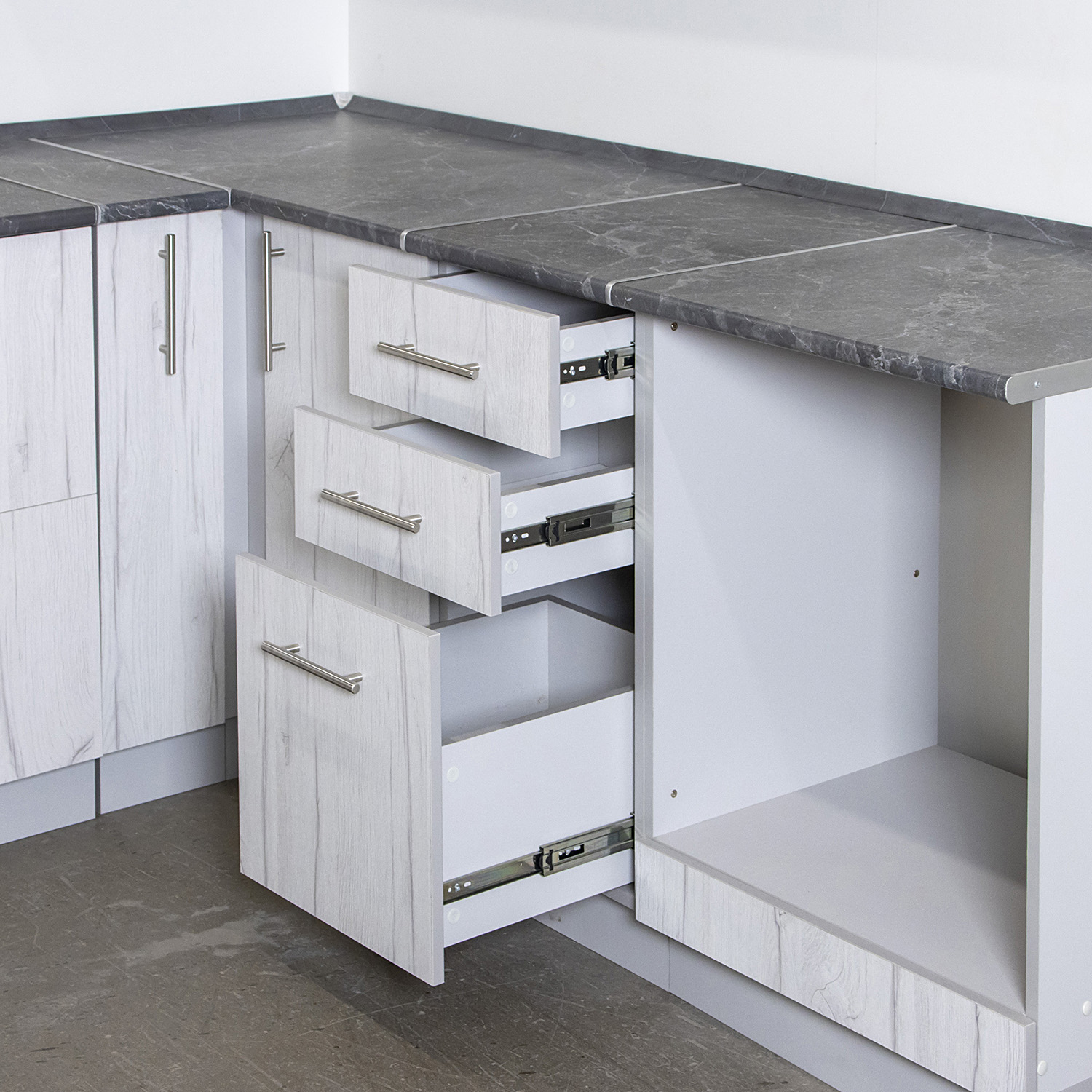 Шкаф напольный 400х850х600 мм BROZEX-WOOD Camellia, с тремя ящиками, серый / юта