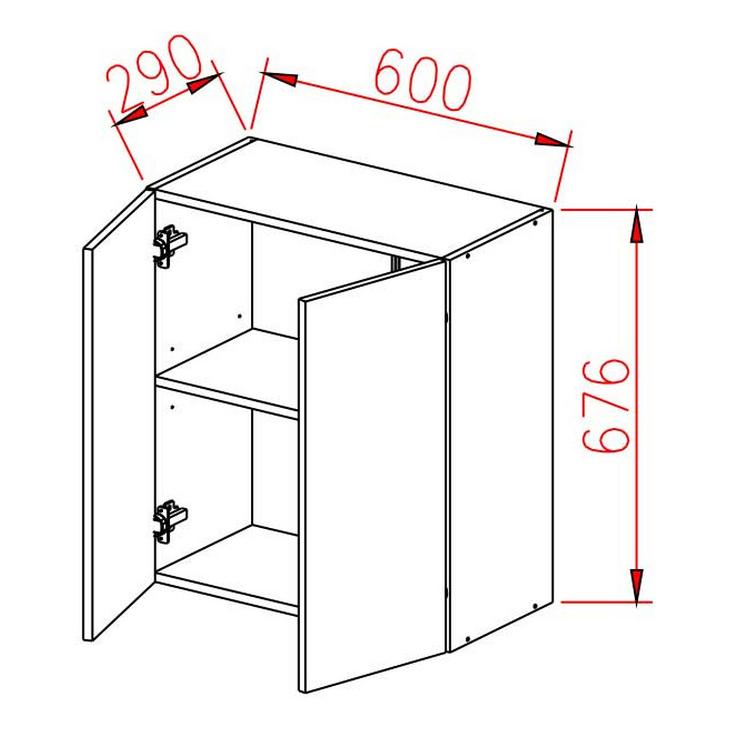 Шкаф навесной 600х676х290 мм BROZEX-WOOD Next, с двумя дверцами, графит / дуб вотан