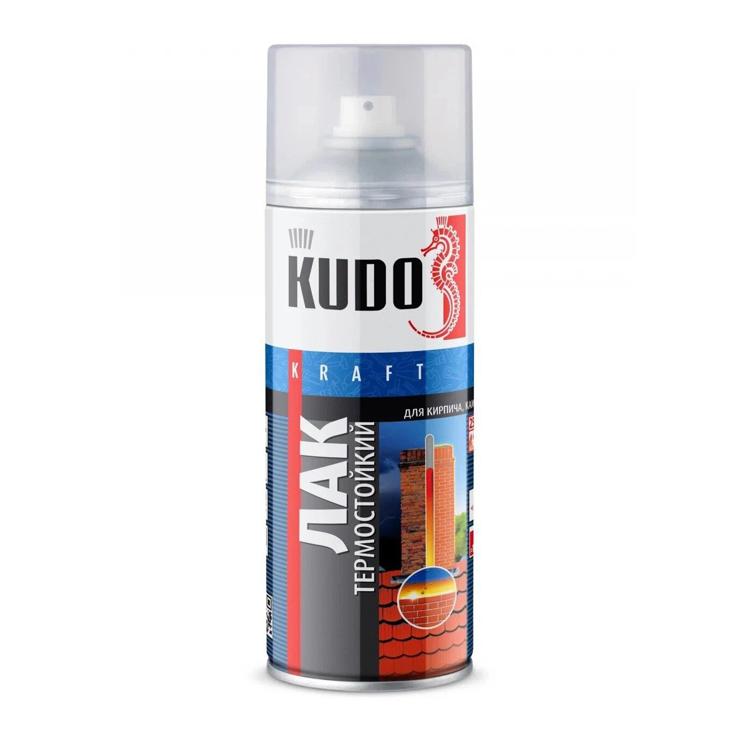 Лак-аэрозоль акриловый бесцветный глянцевый термостойкий 520/270 мл KUDO *1/6