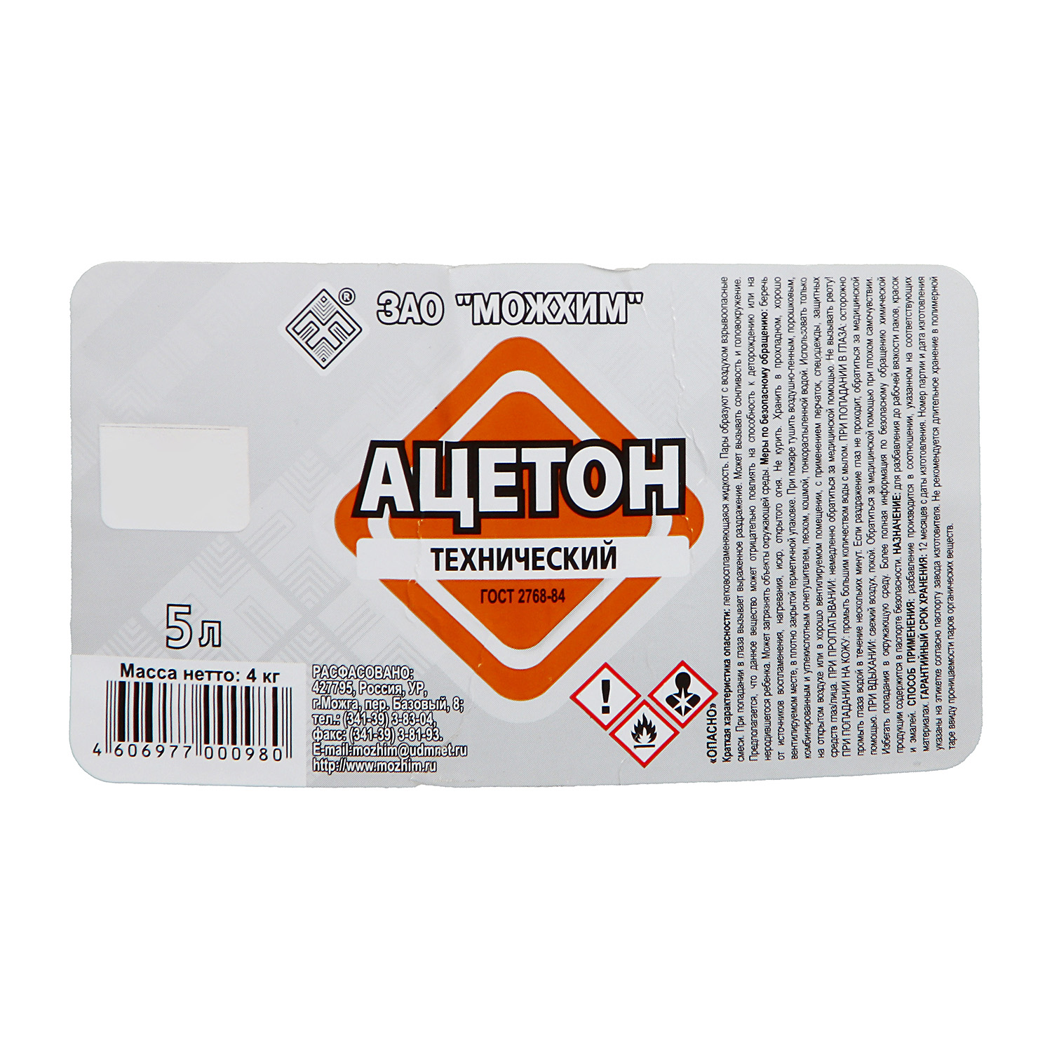 Ацетон 5л канистра (Можга) *4/200