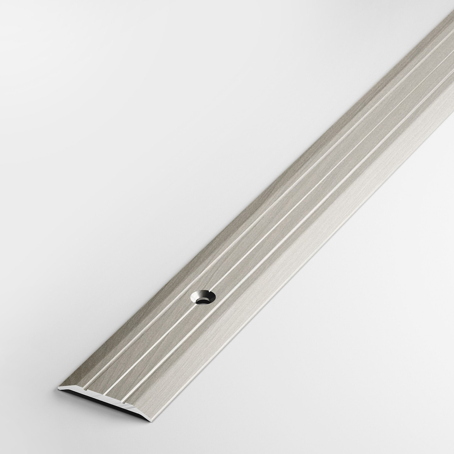 Порог-стык 25х1800 мм Лука ПС 01, ель дымчатая 052 — плоский алюминиевый профиль с двумя желобками для оформления перехода между поверхностями, расположенными на одном уровне. Выполняет декоративную и защитную функции: придает полам завершенный вид, предохраняет кромку ламината, плитки, линолеума и прочих материалов от различных повреждений, не пропускает в стык грязь. Порог имеет открытое крепление. Поставляется в индивидуальной упаковке, с саморезами и дюбелями в комплекте.