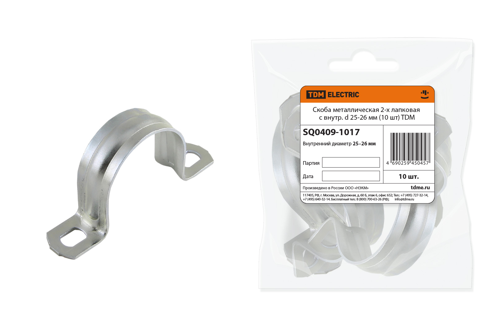 Скоба металлическая 2-х лапковая с d 25-26мм (10шт) TDM SQ0409-1017 *1