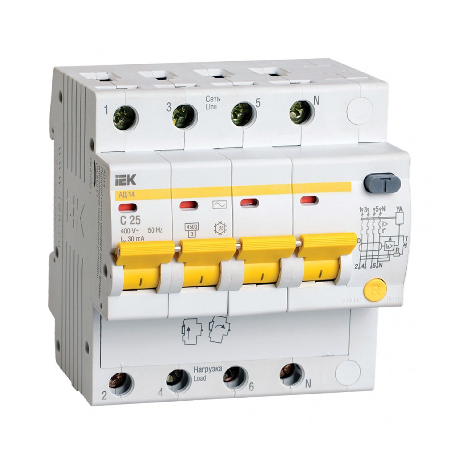 яяяВыключатель диф.тока 4п С 25А 30мА тип АС АД14 ИЭК MAD10-4-025-C-030 *1