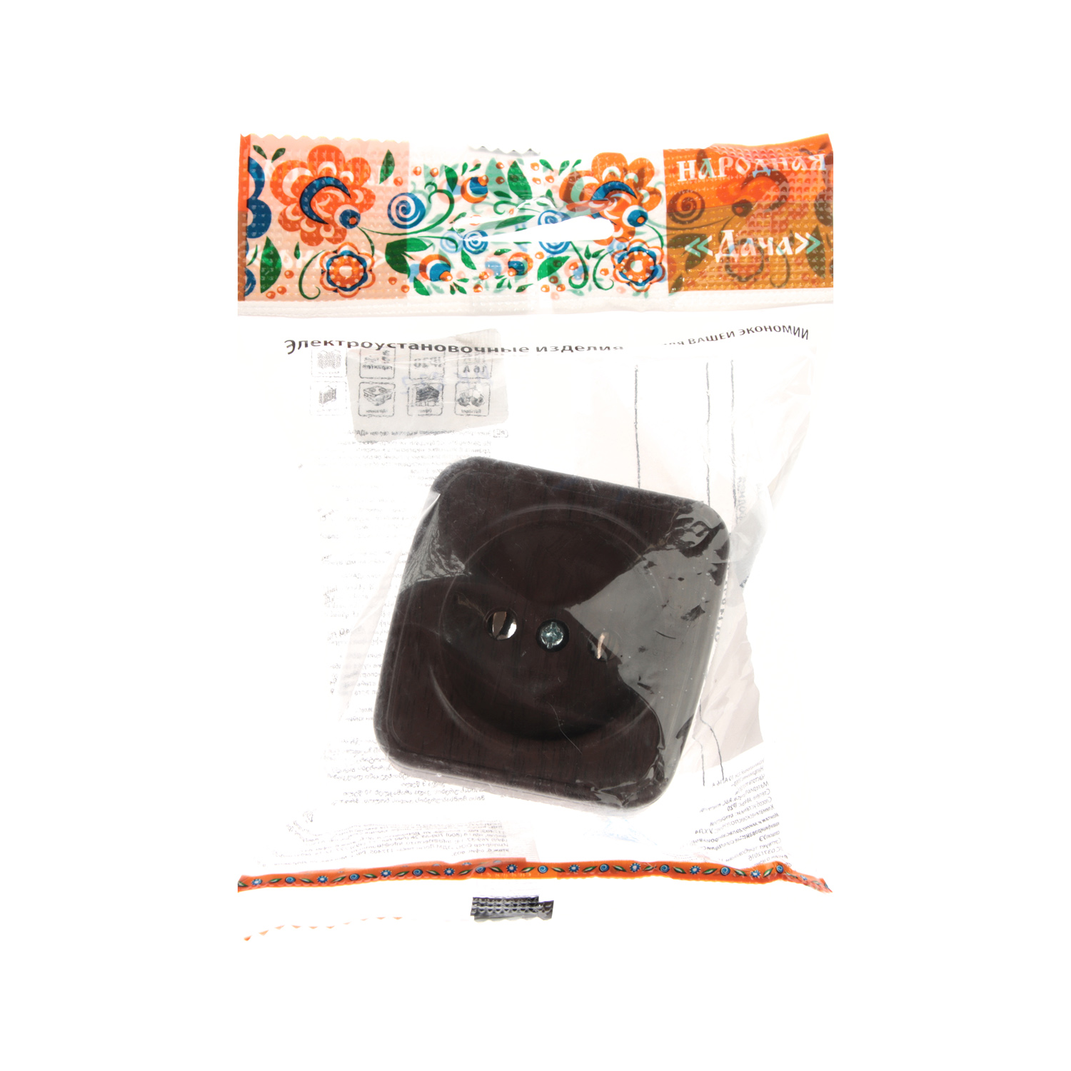 Розетка Дача ОП 1-мест. венге бз 10А Народная SQ1824-0027