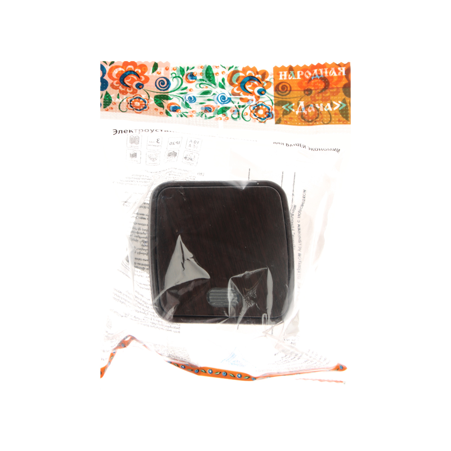 Выключатель Дача ОП 1кл. венге с подсветкой 10А Народная SQ1824-0045