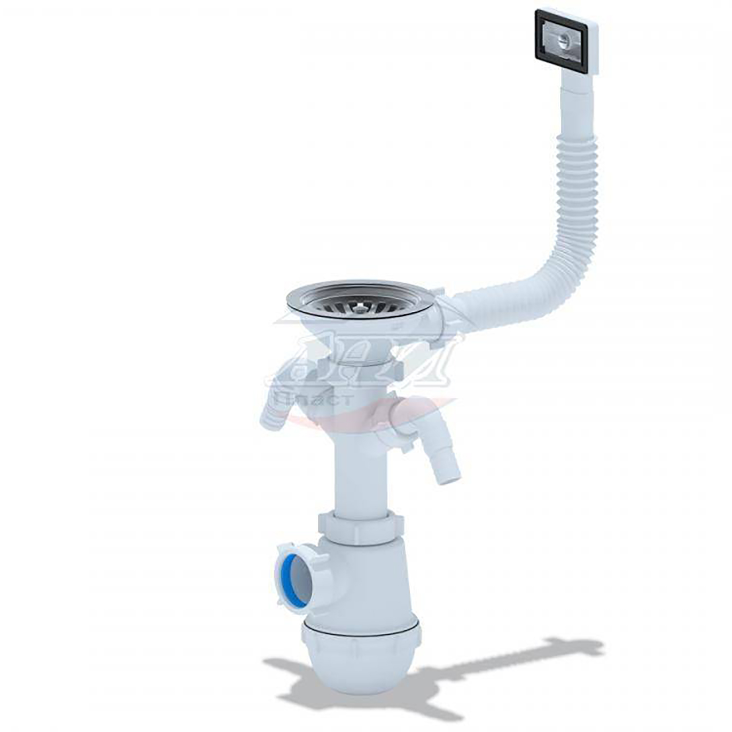 Сифон бутылочный 3 1/2" с двумя отводами с гибким переливом мойки АНИ ГРОТ А0146S *1/10