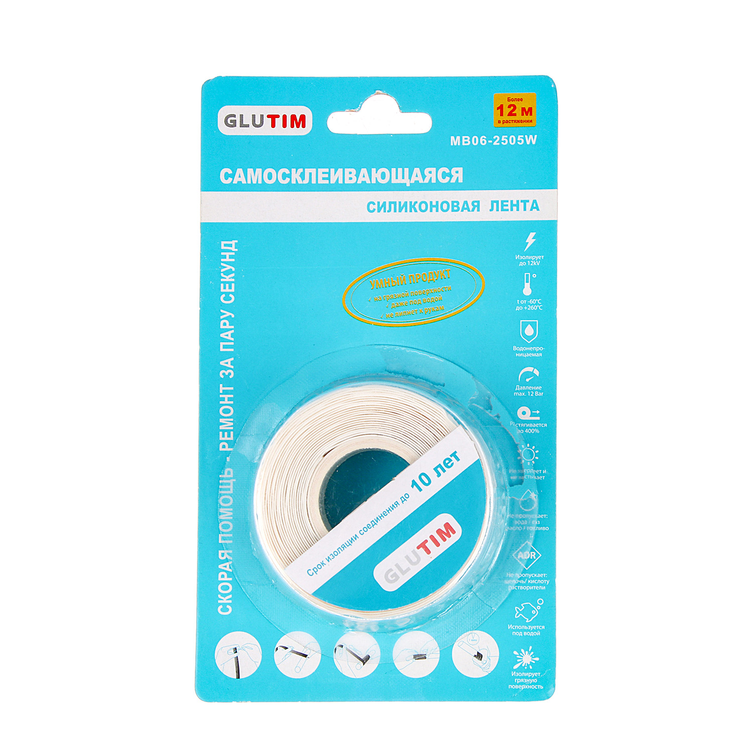 Лента монтажная силиконовая черная GLUTIM 25мм*0.5мм*3м TIM MB06-2505W *1/10/60