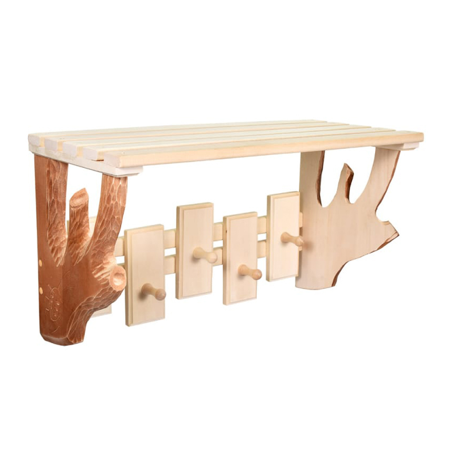 Полка-вешалка 5 крючков резная, 57*32*20 см, липа"Банные штучки"
