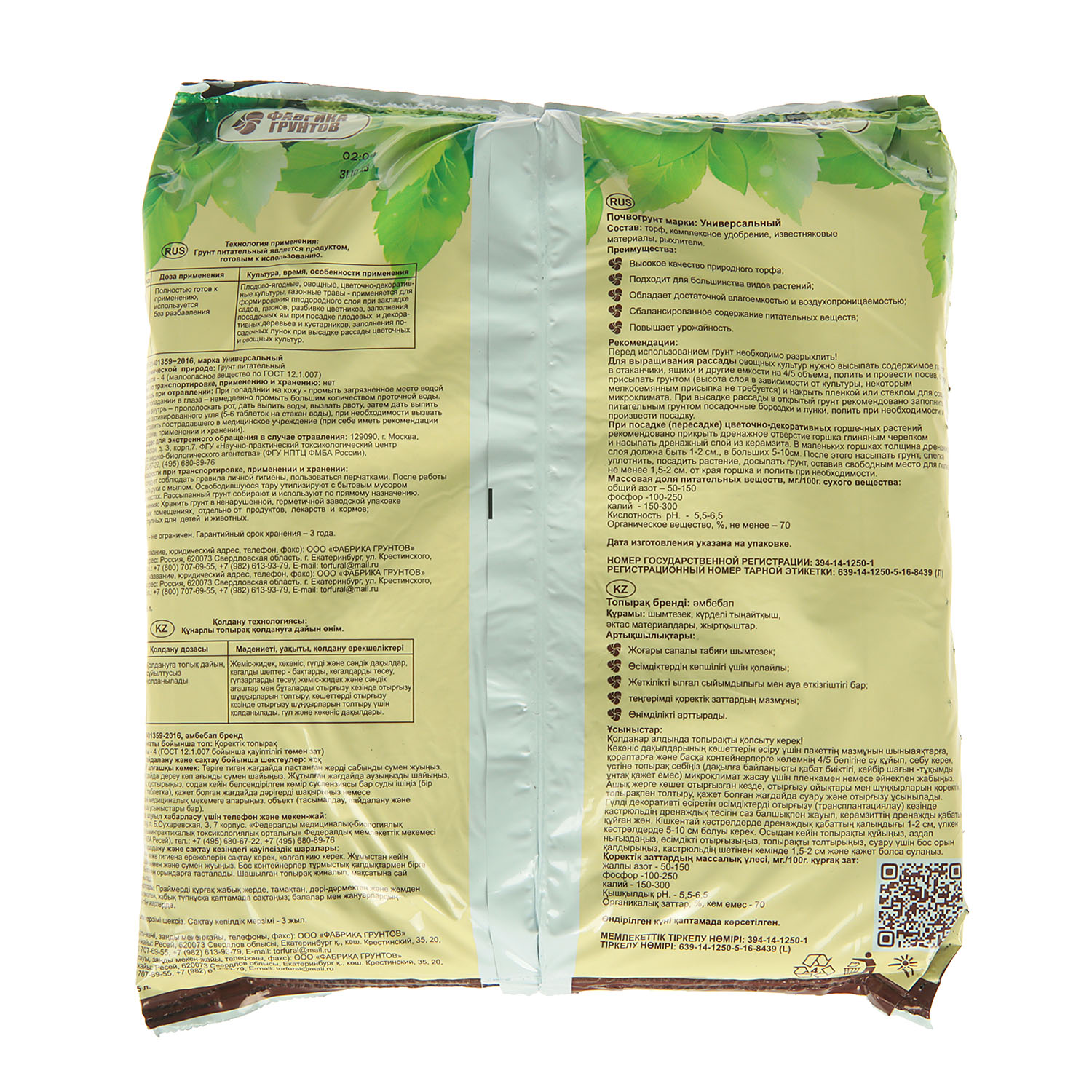 штПочвогрунт универсальный «Азбука роста» от Фабрики грунтов – полностью готовый к применению грунт на основе высококачественного торфа, универсального комплексного удобрения с микроэлементами и добавлением песка/перлита. Почвогрунт имеет сбалансированный состав питательных веществ, который способствует повышению урожайности.