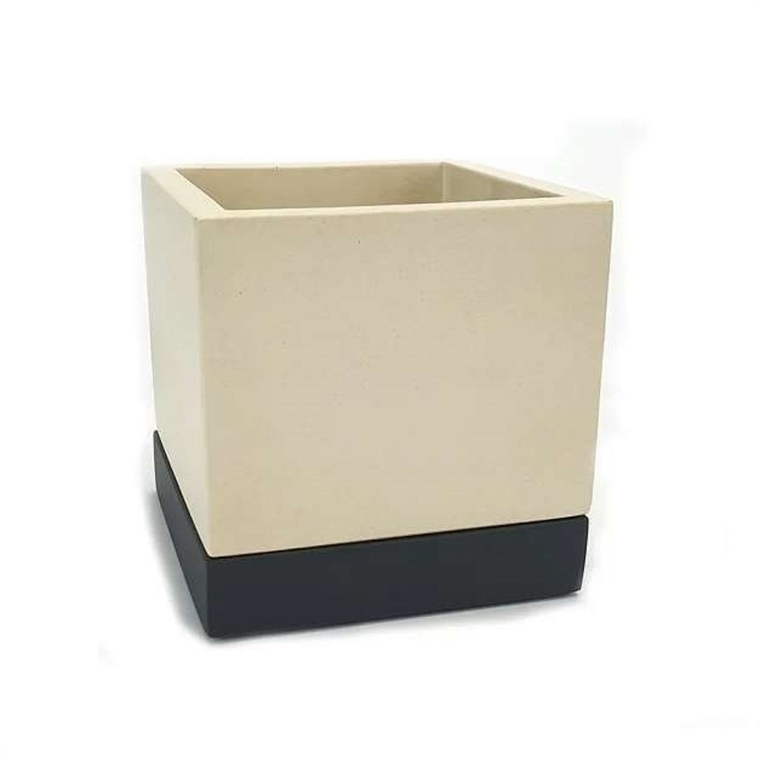 Кашпо гипсовое "Лофт" 0,5л 100х100мм h104мм с поддоном Слоновая кость/Антрацит ("VipSet") *5