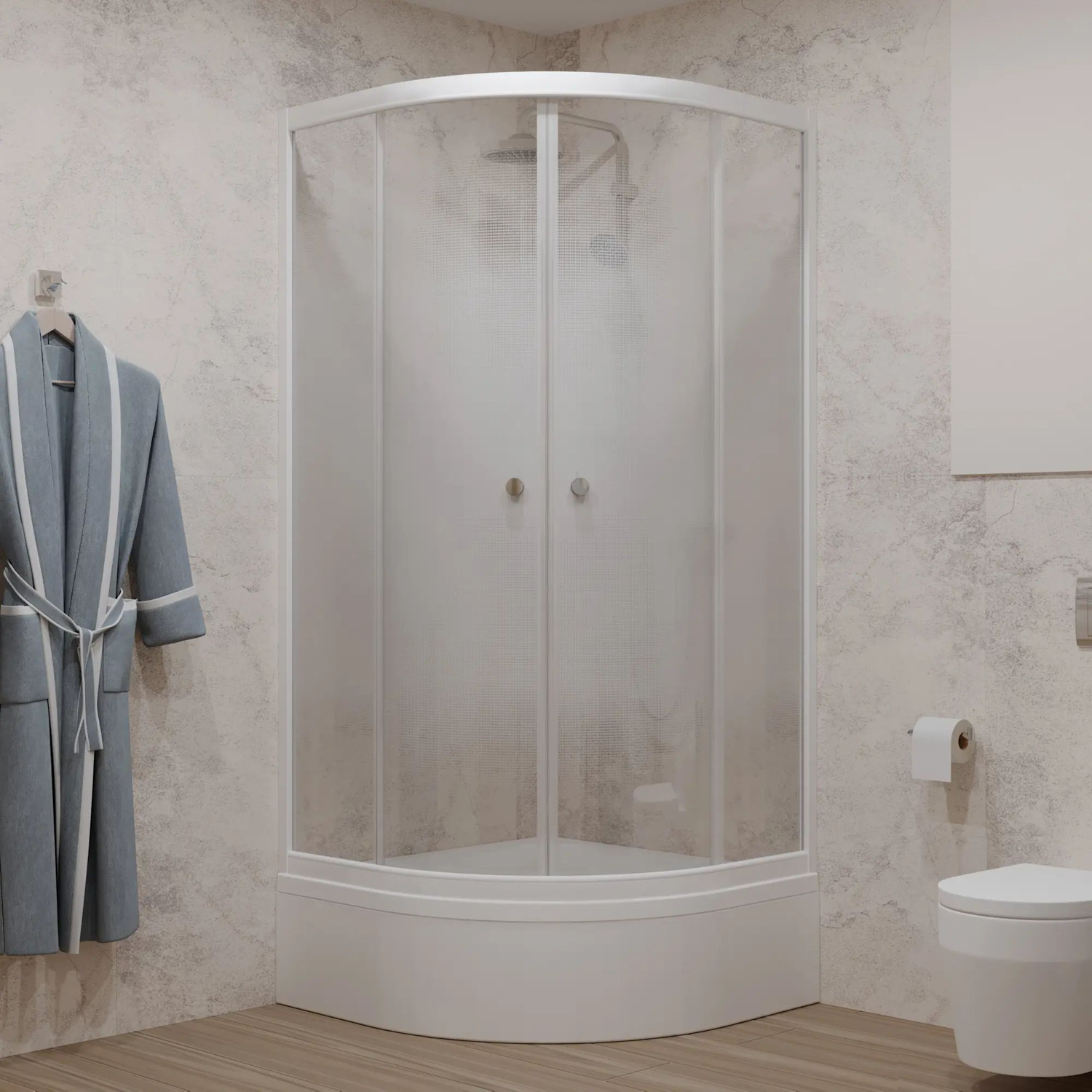 Душевой уголок 90*90 "Лайт В" поддон средний, 1/4 круга, Белый (3 места+сифон E410CL)