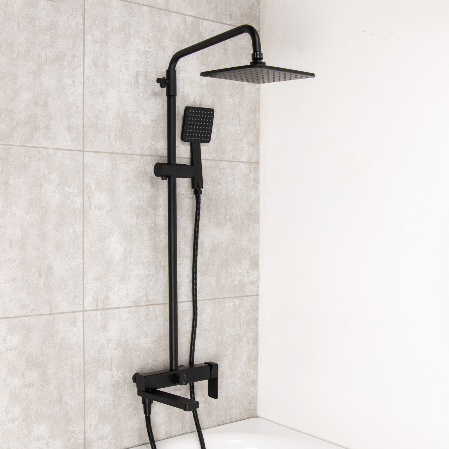 Смеситель д/ванны со стойкой для душа + ручной и тропический душ Fmark FS8745-22H черный *1