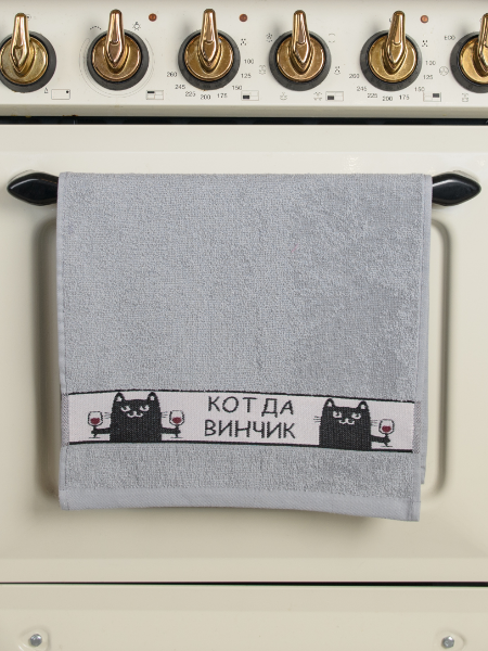 Полотенце махровое 30*60см Wine cats da vinchick светло-серый 400гр/м2 Casa Conforte *10