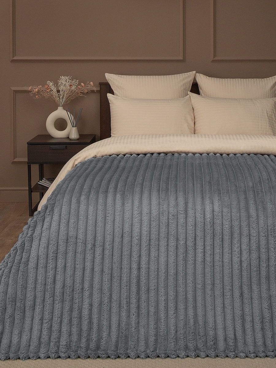 Плед 200*220см фланель крупный рубчик серый TF FNJR GY11 040/2022 NC Absolute *1 акция