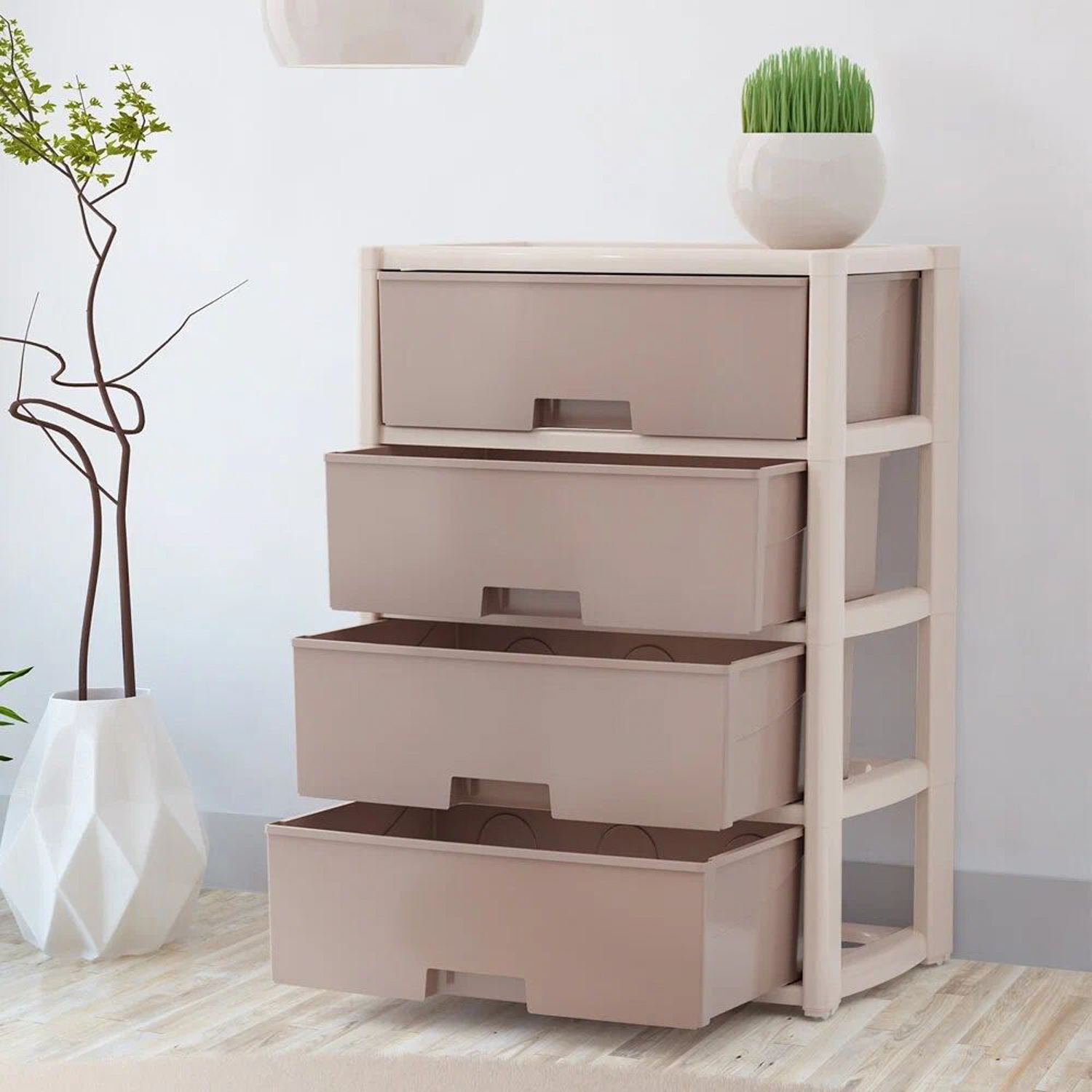 Комод пластм. "Колорит" 4 ящика 810х560х390мм Бежевый/Бежевый М8759 (ЗПИ "Альтернатива") *1