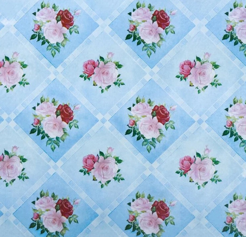 яяяКлеёнка на тканевой основе "Этюд" "Розы в квадратах" голубая шир.1,25м 713/1 "Колорит" *25