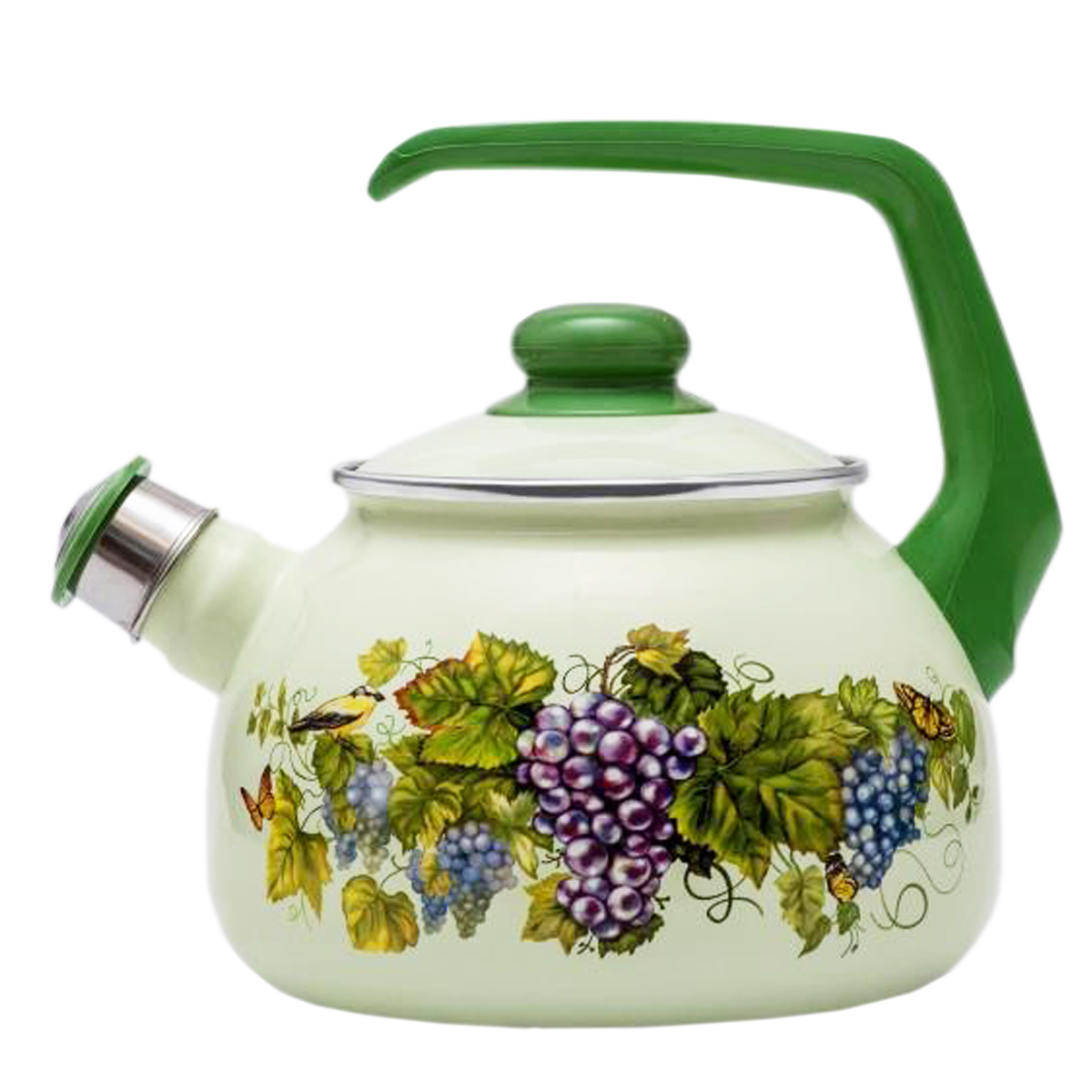 яяяЧайник стальн. эмалир. со свистком 2,5л "Виноград" 2930 ("МЕТРОТ" Сербия) *1/6