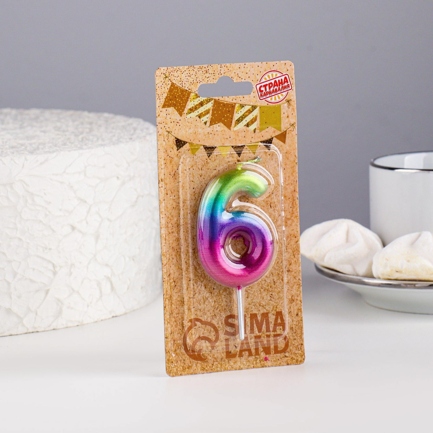 Свеча в торт "Акварель", цифра 6, 6 см 120318