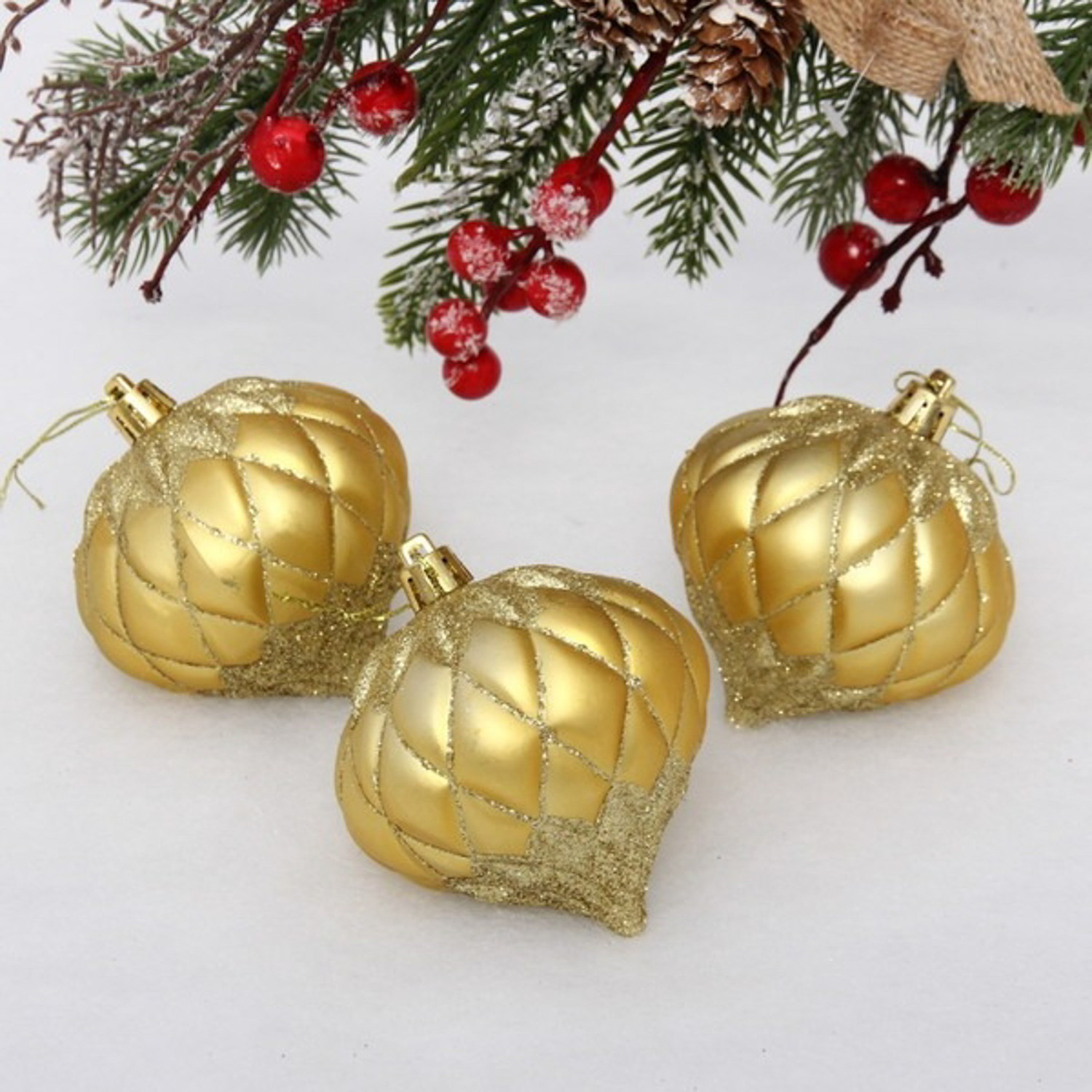 яяяЁлочные игрушки "Юла" 8 см (набор 3 шт), золото