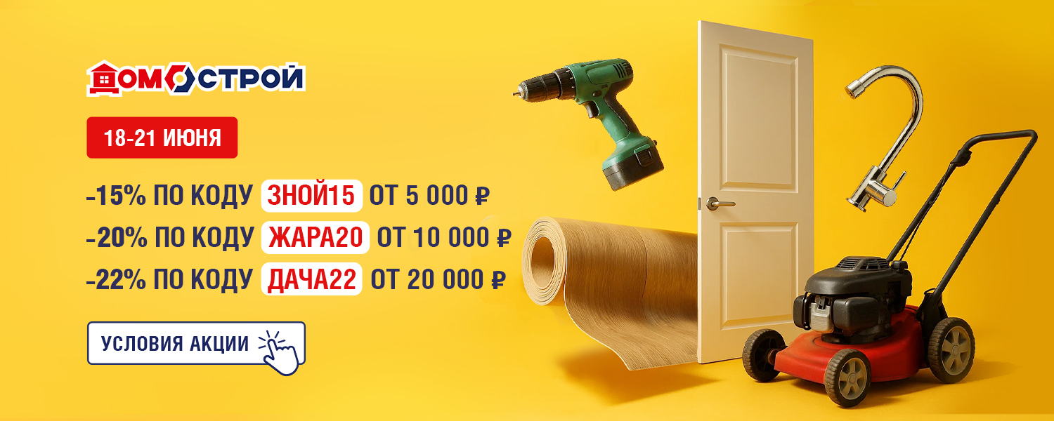 Лето в разгаре — пора горячих предложений от ДомоСтрой! Пока всё вокруг плавится от жары, мы снижаем цены на товары с 18 по 21 июня: